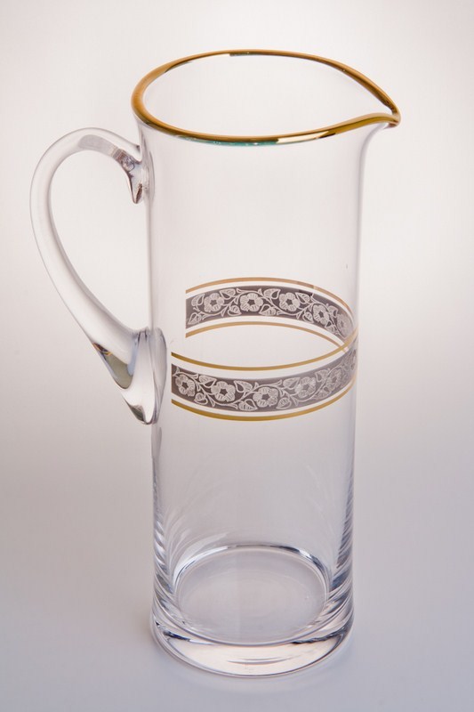 Выпущенные торговой маркой Bohemia стеклянные изделия, отличаются особым утонченным исполнением, никакой лишней гравировки. Все просто и удобно. Украшение столь минимально, что не мешает любоваться отличным качеством материала, из которого сделан кувшин. Декоративное решение чешских мастеров неповторимо по своей оригинальности и утонченности. Позолота по краю кувшина добавляет благородства и изысканности.