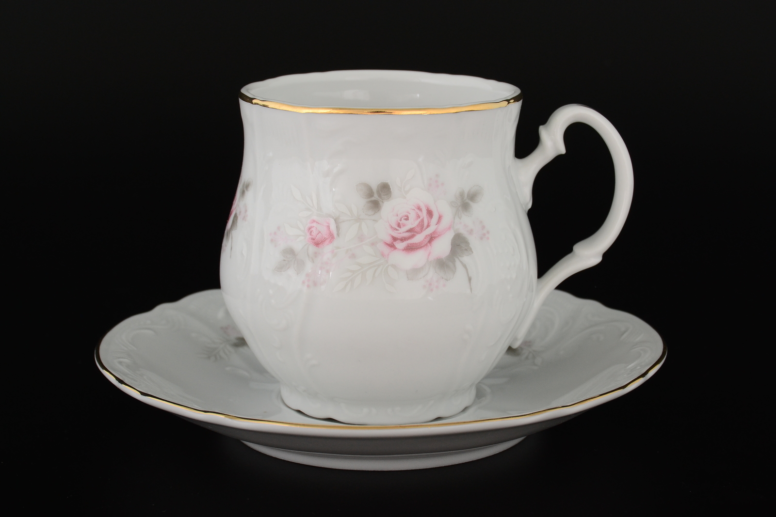 Кружка с блюдцем Джонас "Бернадотт Серая роза золото" 310 мл.