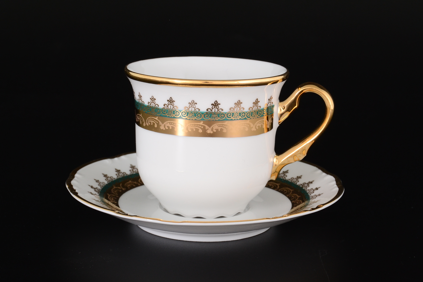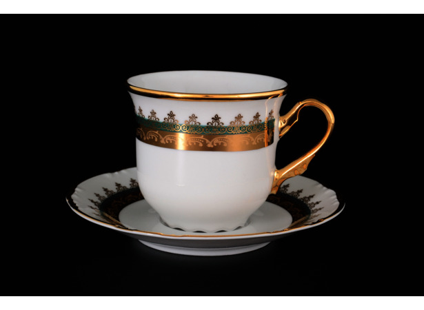 Набор чайных пар "Констанция Изумруд Золотой орнамент" (чашка 240 мл + блюдце) на 6 персон