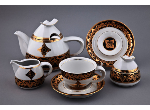 Сервиз имеет позолоту 24 карата.