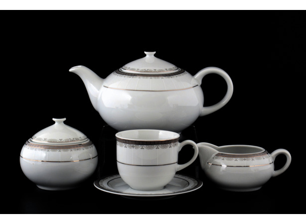 Чайный сервиз "Опал Платиновая лента" на 6 персон 15 предметов