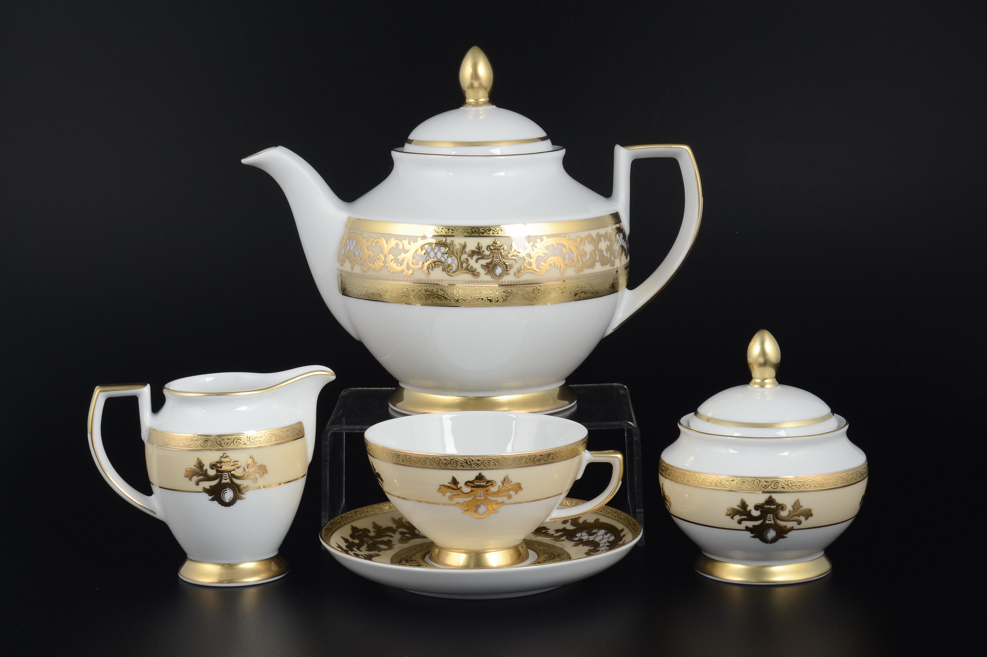 Чайный сервиз "Alena 3D Cream Gold Constanza" на 6 персон 15 предметов