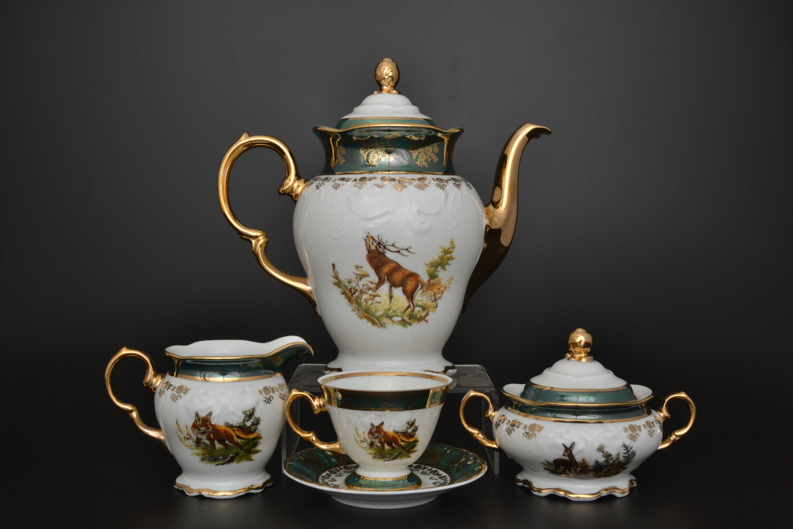 Кофейный сервиз "Фредерика Охота Зеленая" на 6 персон 15 предметов
