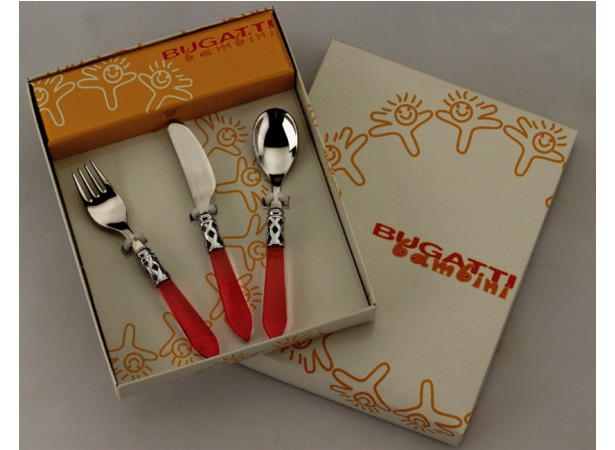 Детский набор столовых приборов "Бугатти Бэби Аладдин" 3 предмета (красный).