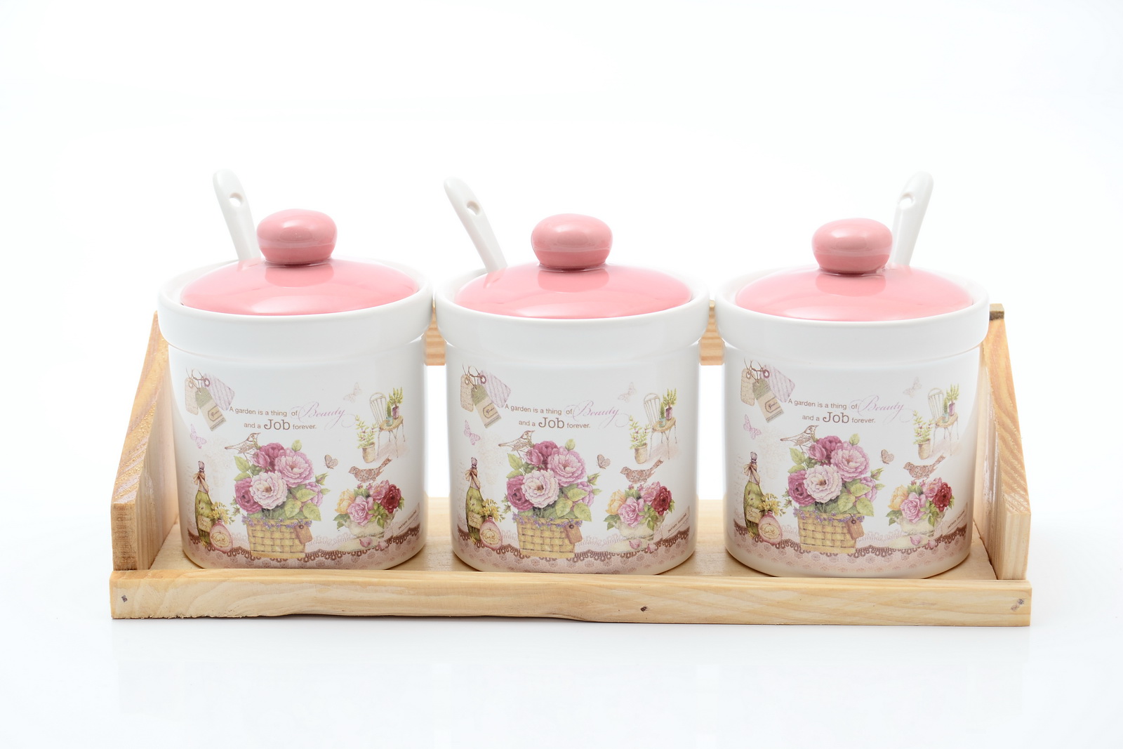Набор банок для сыпучих продуктов с ложками на подставке "Pink garden" 250 мл