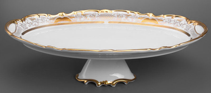 Блюдо "Симфония золотая 427" 50 см. овальное на ножке.