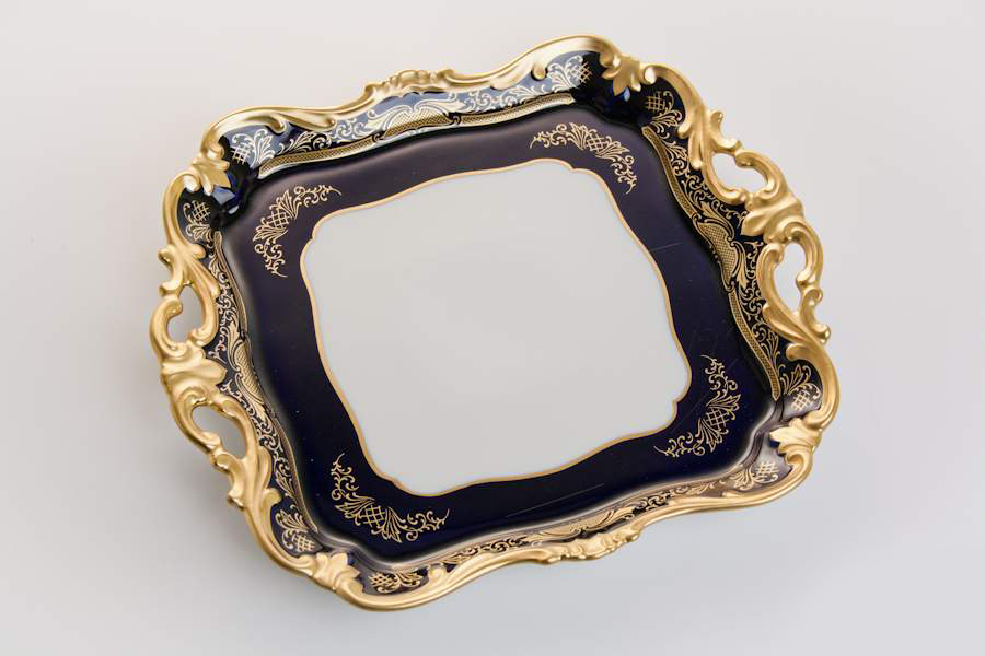 Блюдо "Симфония кобальт 8012" 30 см. квадратное без ножки.