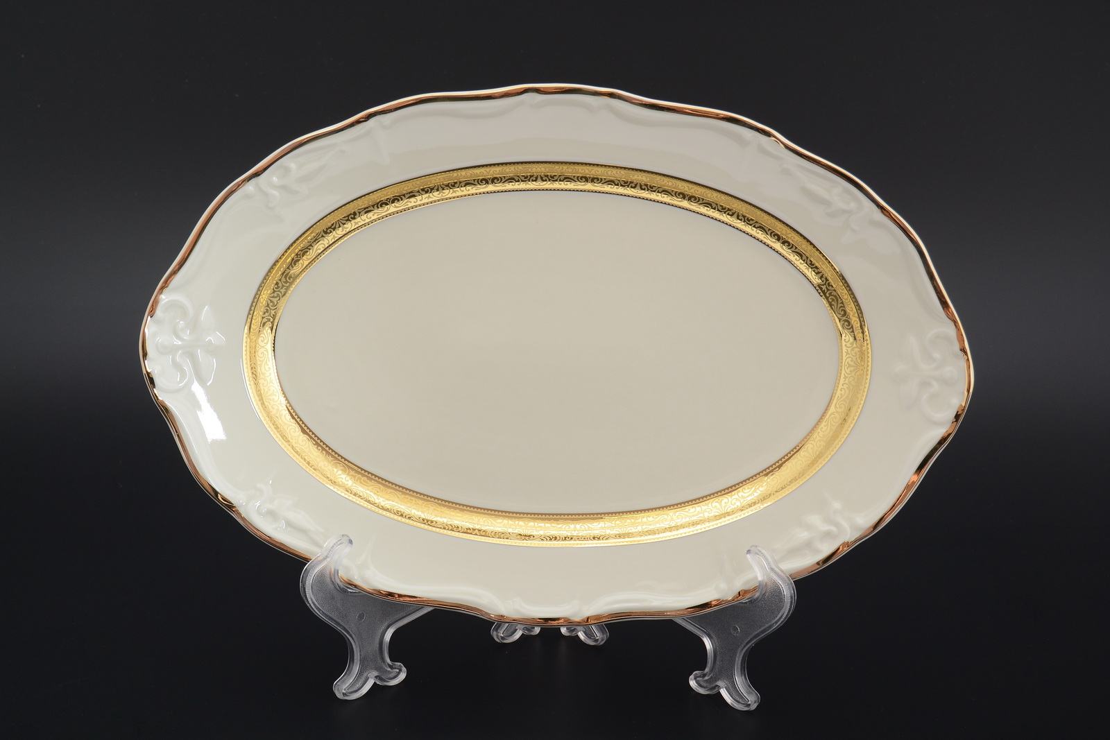 Блюдо "Мария Луиза Золотая лента Слоновая кость" 32 см овальное