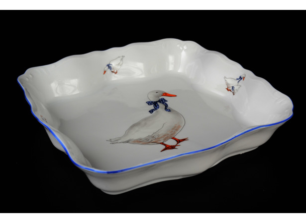 Салатник "Гуси" 26 см. квадратный.