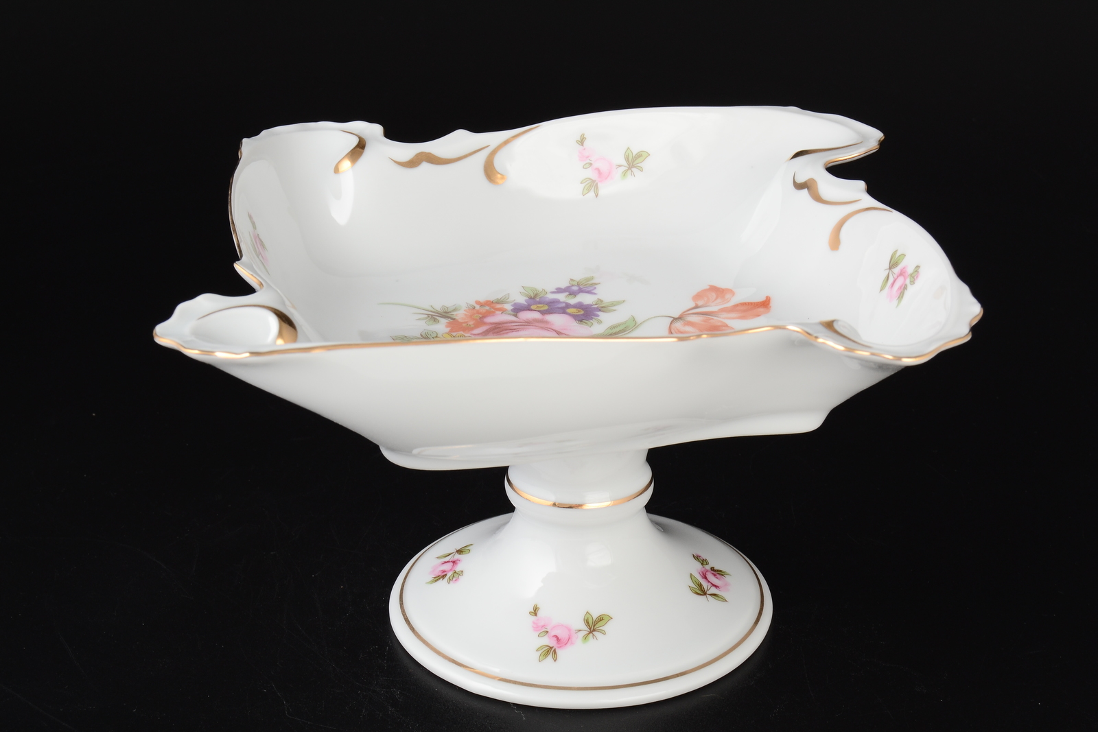 Салатник "Полевой цветок" 24 см. квадратный на ножке.
