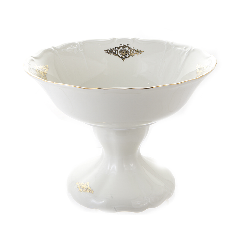 Салатник "Мария Луиза Золотые вензеля Слоновая кость" 25 см на ножке