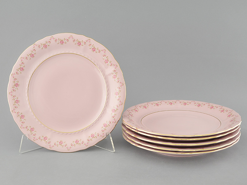 Набор тарелок "Соната Розовый фарфор 0158" 25 см 6 шт