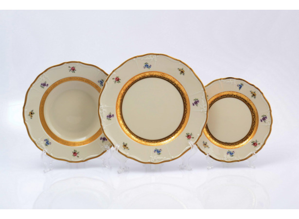 Набор тарелок "Мария Луиза Слоновая кость Золотая полоса" 18 предметов