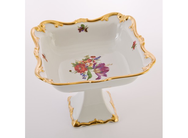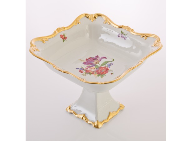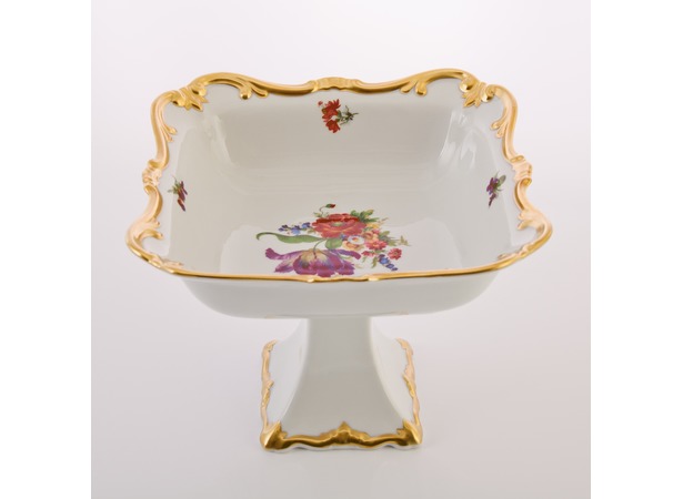 Ваза для фруктов "Мейсенский букет 1042" 22 см. на ножке