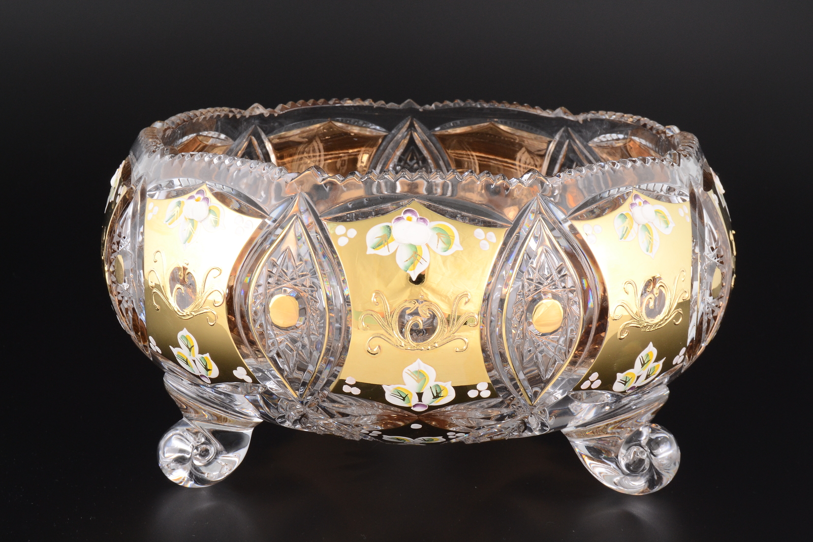 Ваза для фруктов "Хрусталь с золотом" 31 см. на 3-х ножках