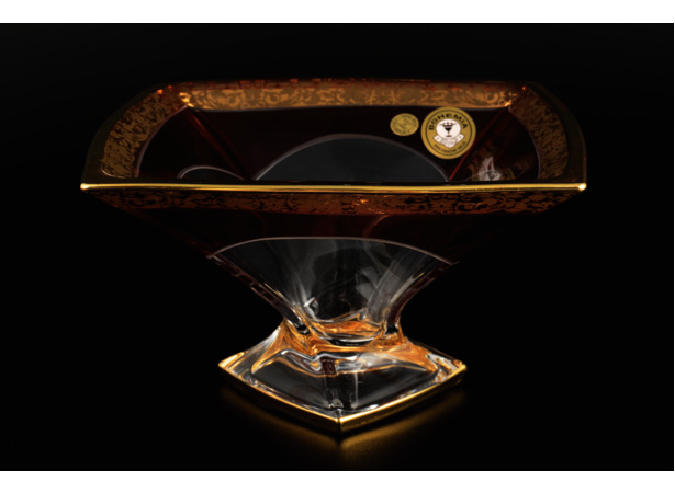 Ваза для конфет "Квадро красная с золотом" 22 см