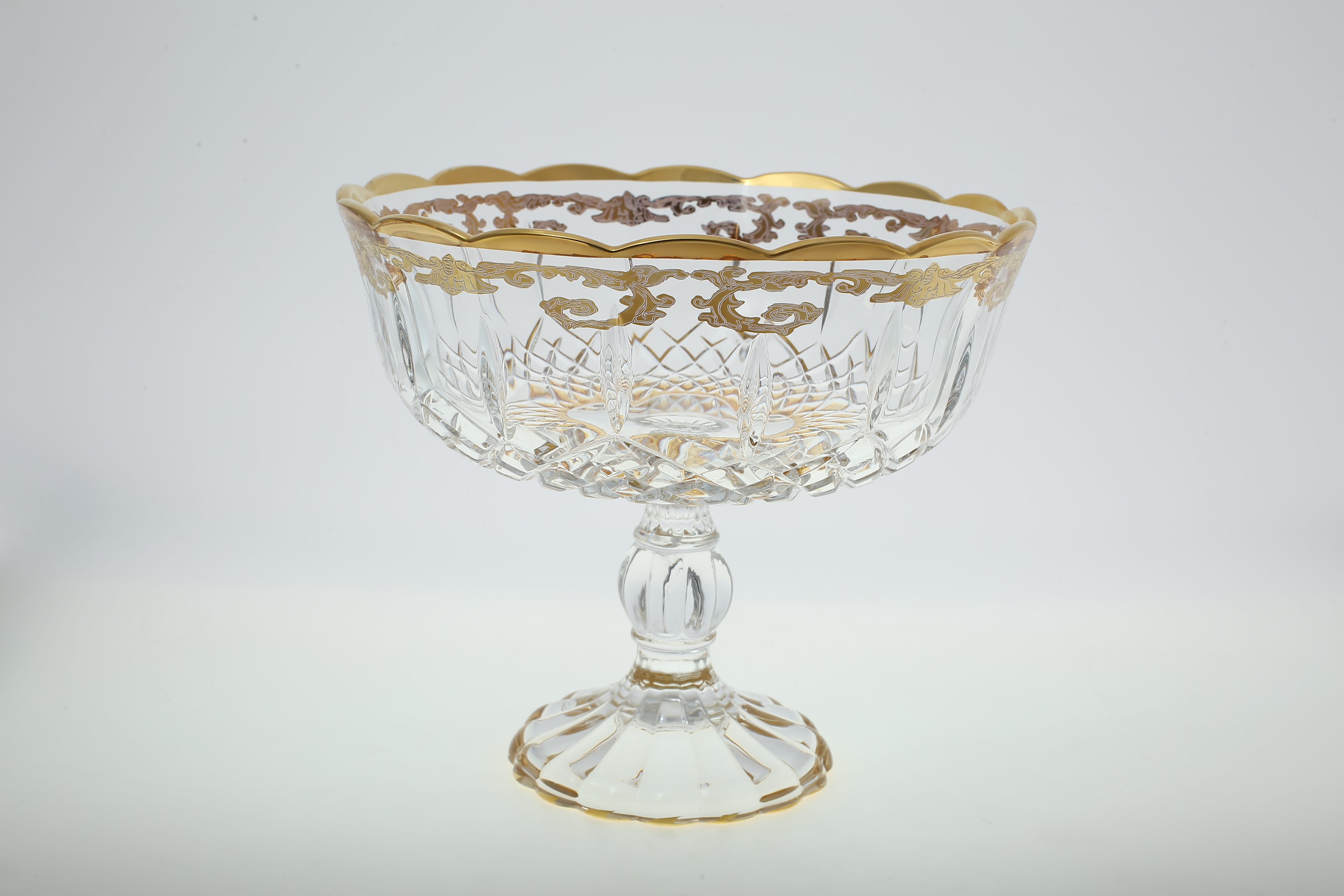Ваза для конфет "Золотые узоры Янтарь" 23 см на ножке