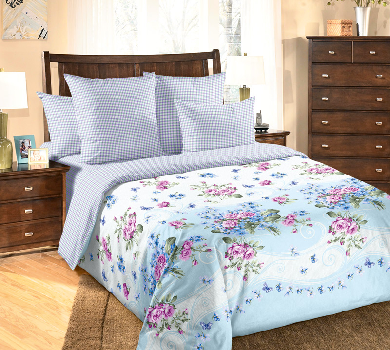 Комплект постельного белья "Фиалка 3" перкаль, двуспальный евро