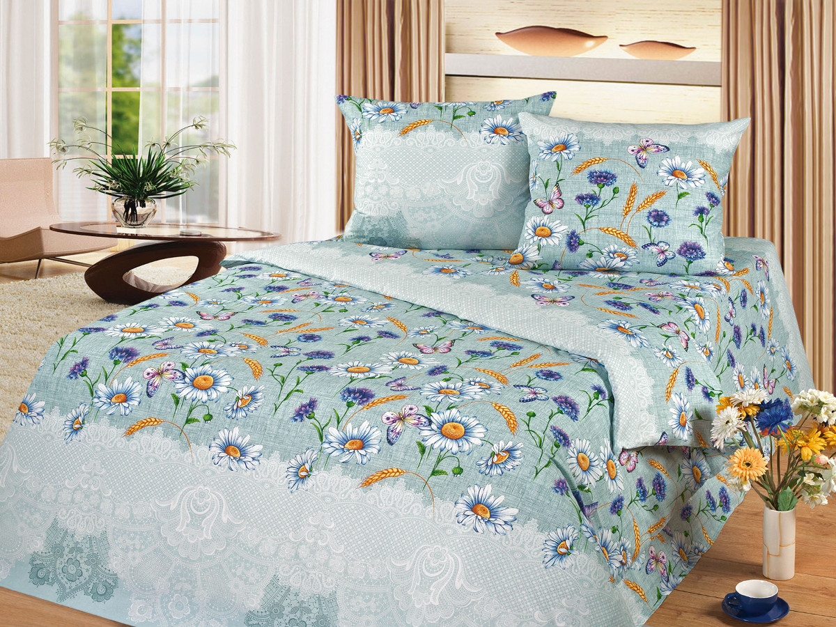 Комплект постельного белья Cleo Полевые цветы на сером фоне 3D бязь, двуспальный евро