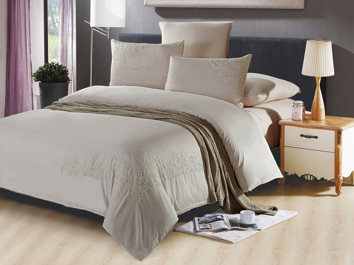 Комплект постельного белья Cleo Серый модал с вышивкой, евро макси