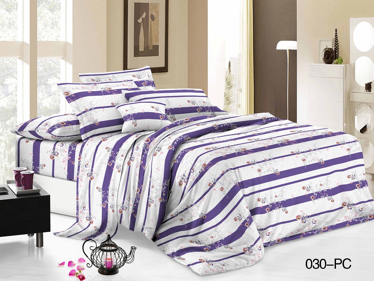 Комплект постельного белья Cleo Фиолетовые полоски поплин, двуспальный евро