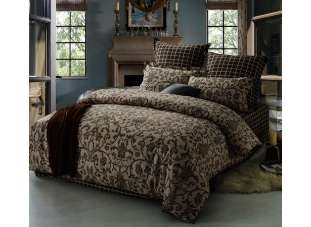 Комплект постельного белья Сайлид "Бежево-кофейный с узорами" сатин, евро макси