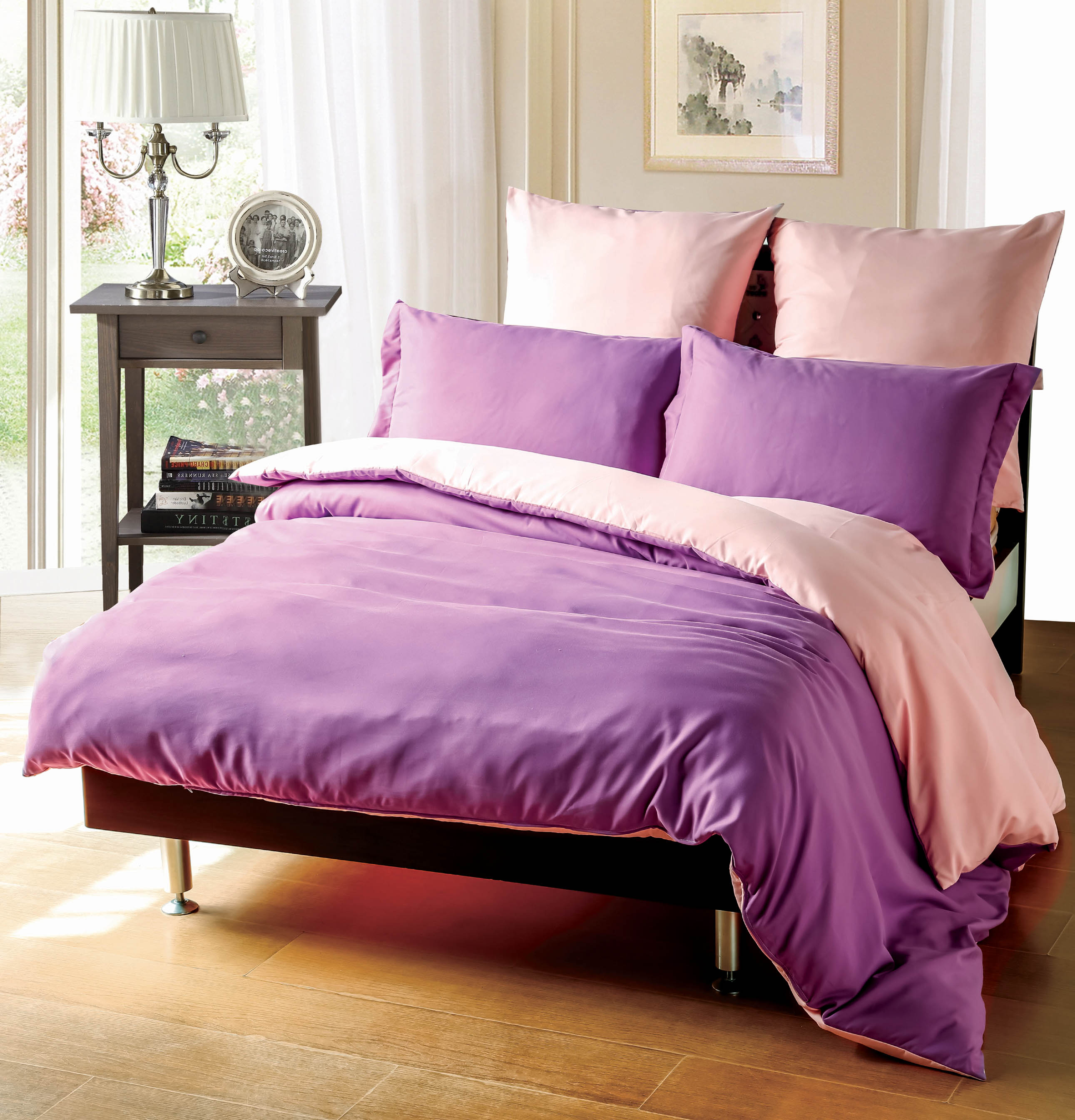 Комплект постельного белья SRosete Однотонный (фиолетовый) сатин, двуспальный