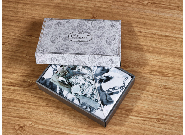 Комплект постельного белья Cleo Кремово-синий с цветами сатин, 1,5 сп.