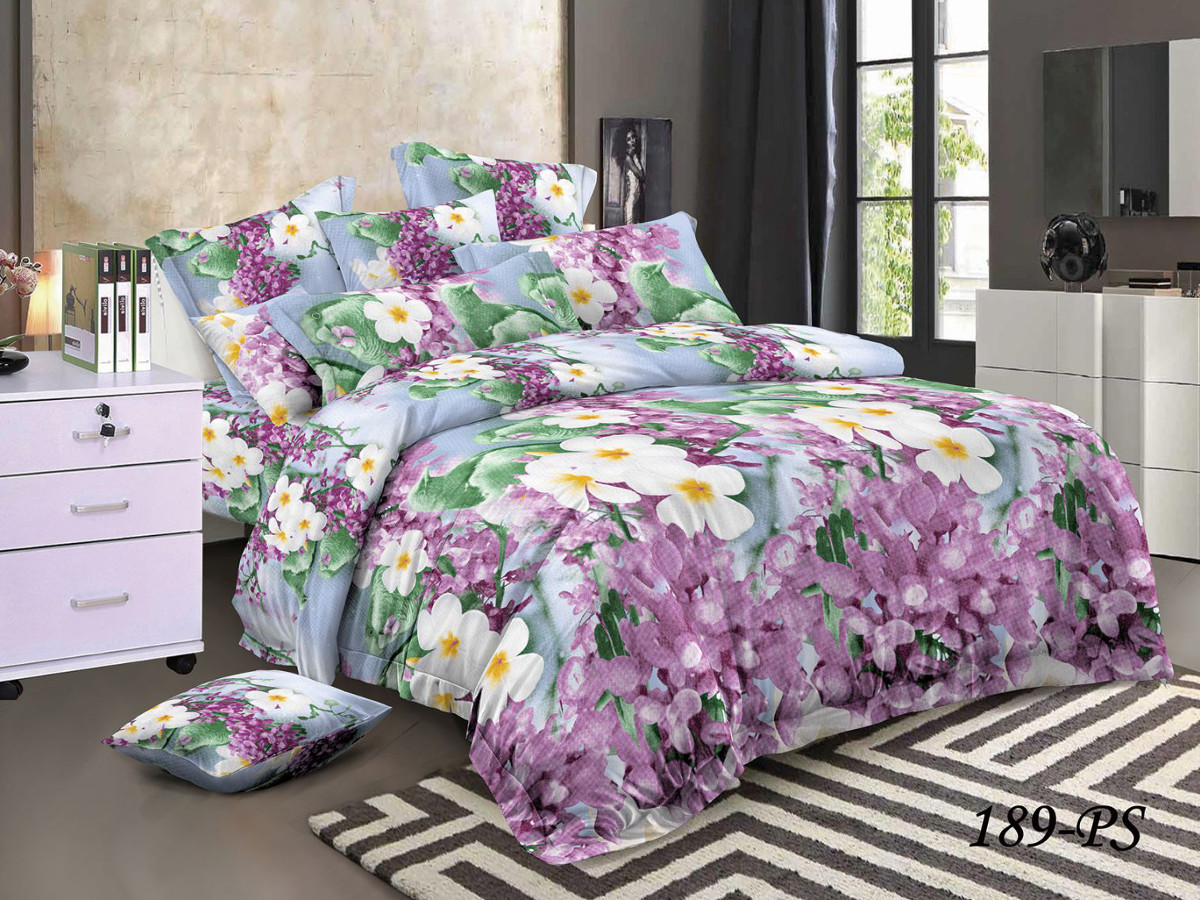 Комплект постельного белья Cleo Белые и сиреневые цветы полисатин, евро макси