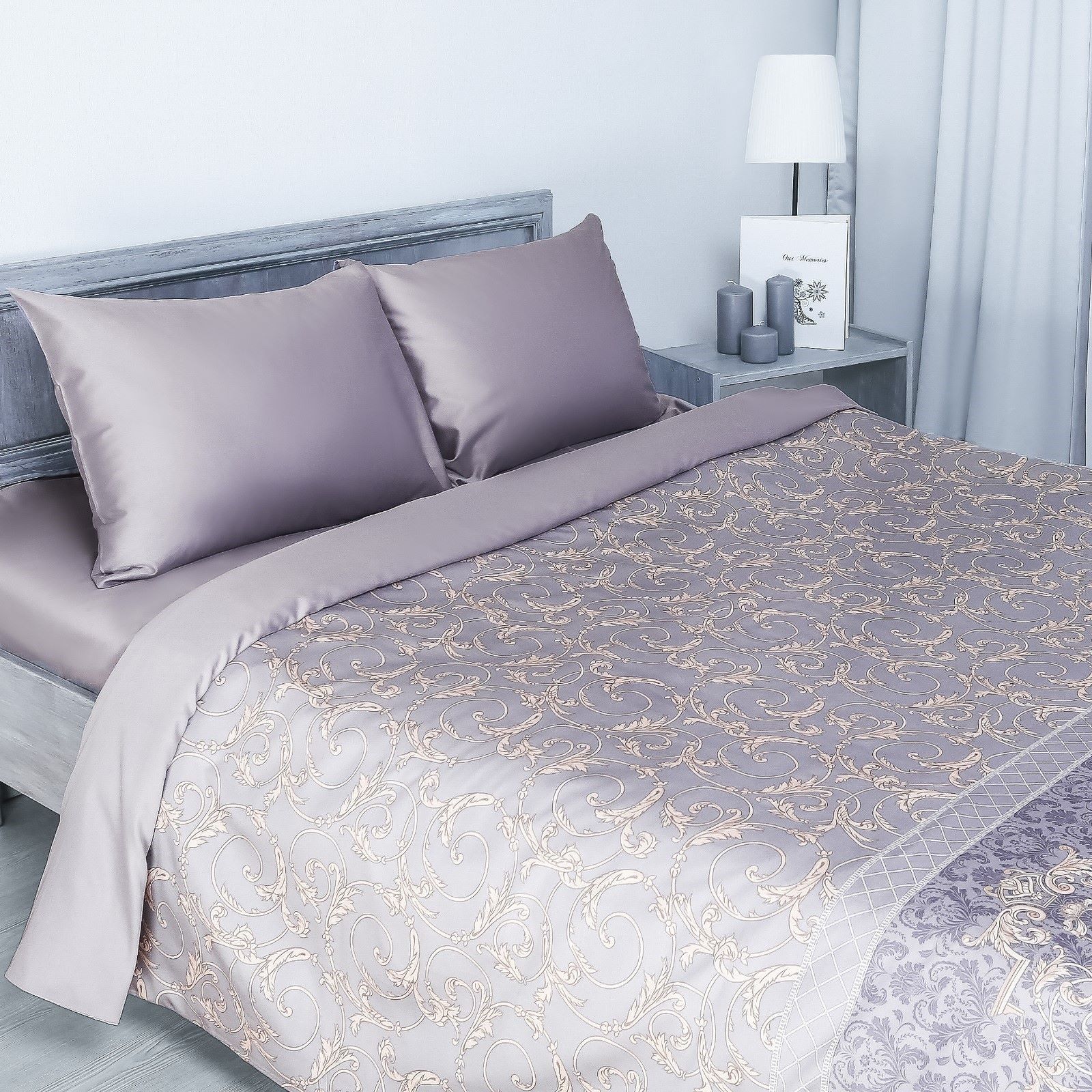 Комплект постельного белья Этель "Жемчужная дымка" мако-сатин, сем.