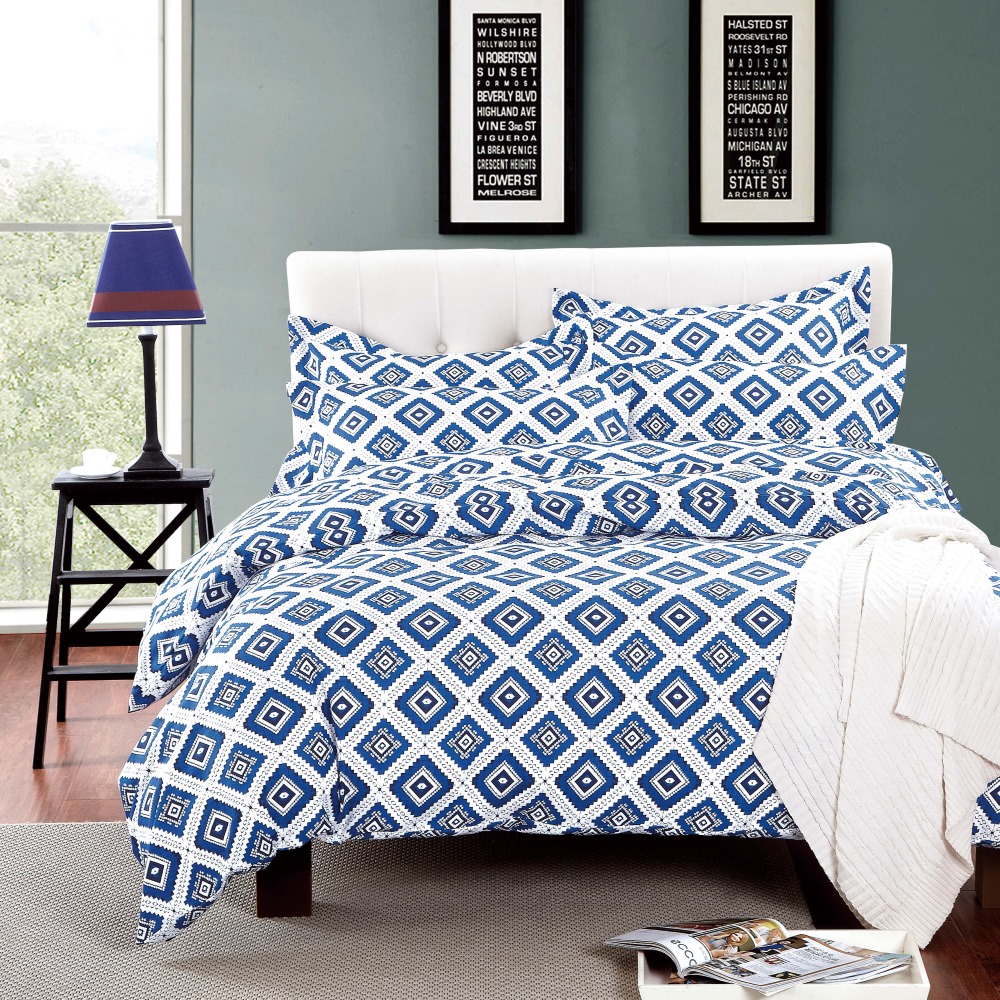 Комплект постельного белья "Liliya Синий орнамент" микрофибра, двуспальный