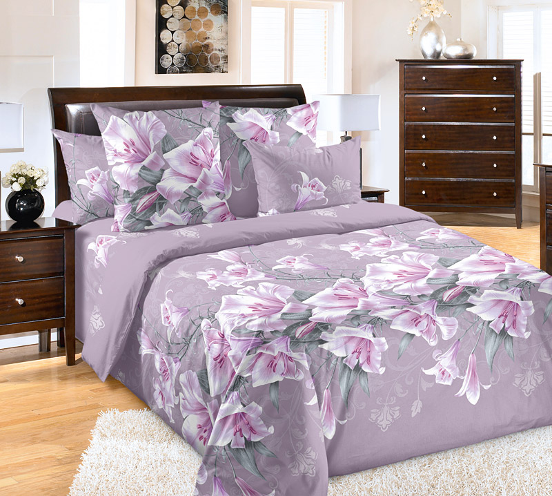 Комплект постельного белья Белиссимо "Лилия 4" бязь, двуспальный евро