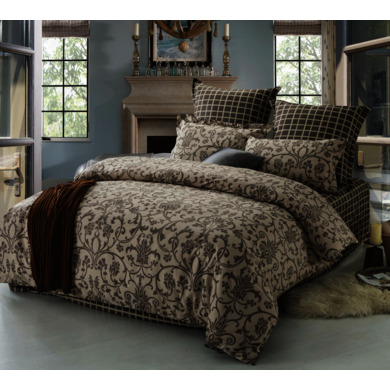 Комплект постельного белья Сайлид "Бежево-кофейный с узорами" сатин, евро макси