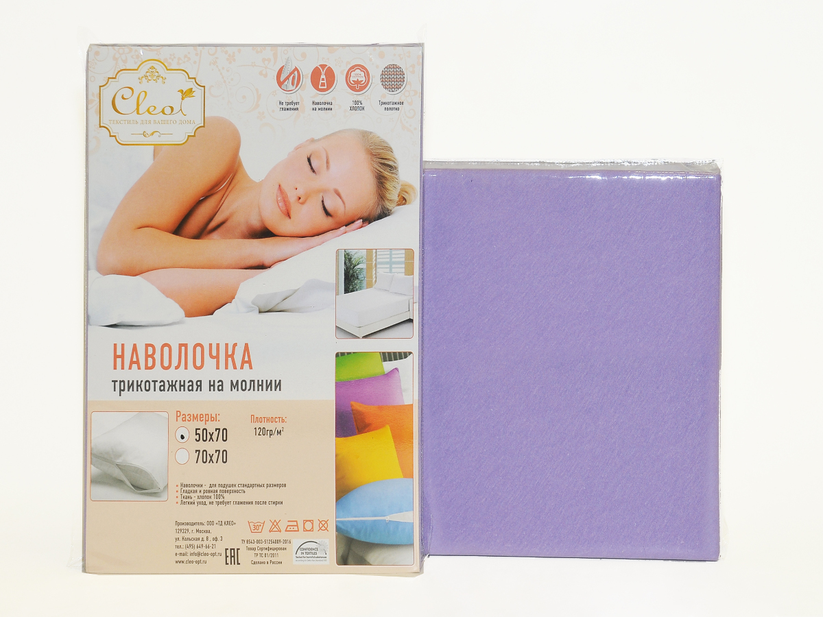 Наволочки трикотажные на молнии Cleo 50х70 см 2 шт (сиреневые)