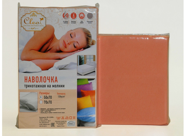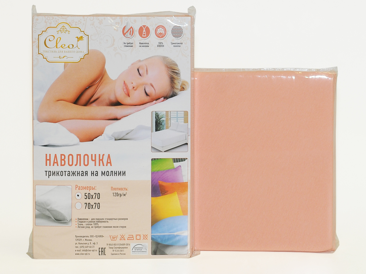 Наволочки трикотажные на молнии Cleo 70х70 см 2 шт (персиковые)