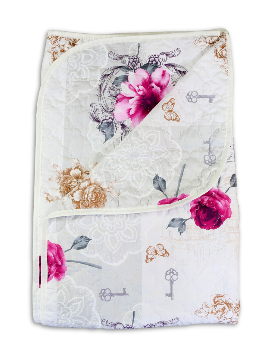 Покрывало-одеяло Cleo Светло-серое с цветами, ключами и бабочками 172х205 см