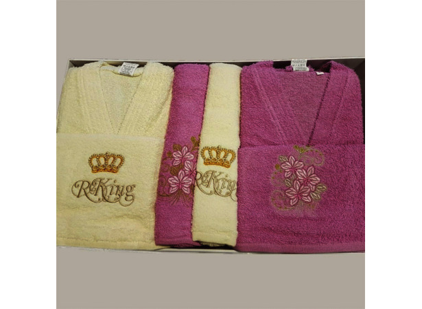 Набор Fawilla халаты 2 шт + полотенца 4 шт (бежевый/сиреневый)